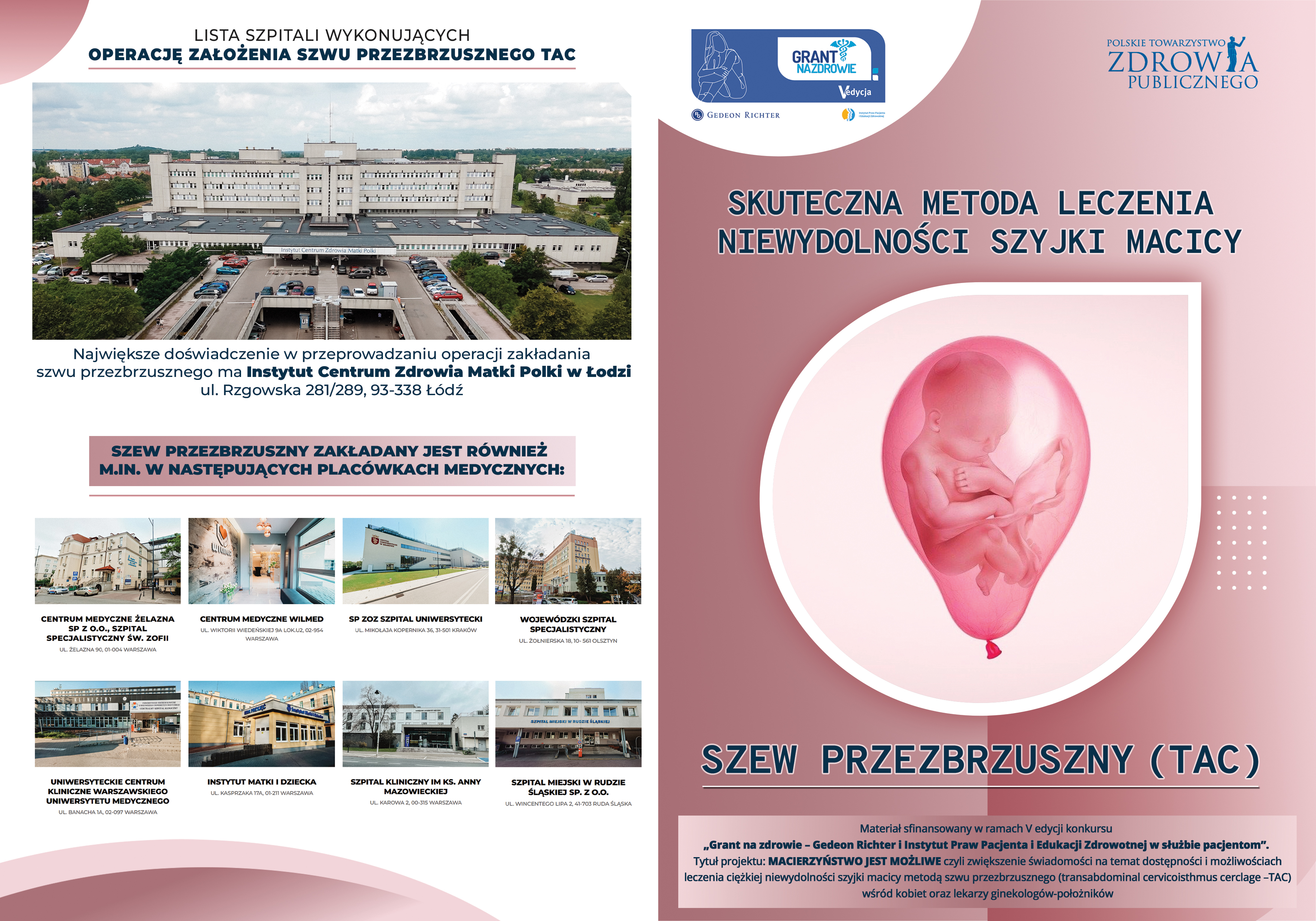 W ramach V edycji konkursu „Grant na zdrowie – Gedeon Richter i Instytut Praw Pacjenta i Edukacji Zdrowotnej w służbie pacjentom” Polskie Towarzystwo Zdrowia Publicznego zostało jego laureatem i otrzymało dofinansowanie na realizację projektu pt. „MACIERZYŃSTWO JEST MOŻLIWE” . Jego celem jest rozpowszechnienie wiedzy na temat mało znanej metody leczenia ciężkiej niewydolności szyjki macicy, czyli jej niezdolności do utrzymania ciąży do przewidywanego terminu porodu. Metoda ta polega na założeniu szwu (taśmy) TAC (transabdominal cervicoisthmus cerclage) na cieśń macicy.