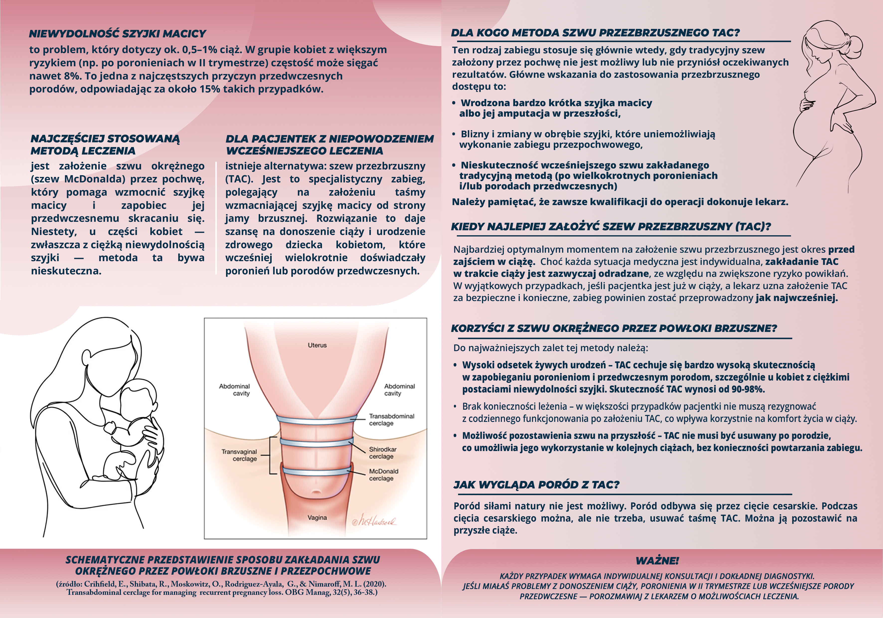 • zamieszczenie opracowanych materiałów edukacyjno-informacyjnych na temat metody leczenia ciężkiej niewydolności szyjki macicy za pomocą szwu przybrzusznego TAC na stronie Polskiego Towarzystwa Zdrowia Publicznego (ulotka)
